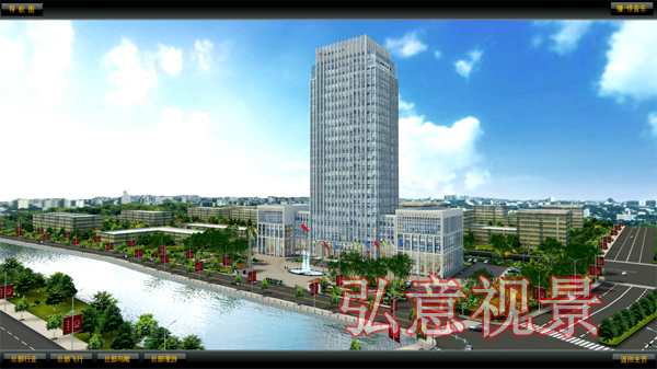 7)模擬總部外主要交通干道及道路設(shè)施狀況,以總部為起點(diǎn),讓用戶體驗(yàn)到周邊便利的交通條件和交通環(huán)境。