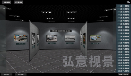 (2)用戶登錄成功后,進入3D場景的頁面,在該頁面上部添加鏈接欄區(qū)域,鏈接項目文字為“查詢統(tǒng)計”和“退出”。用戶點擊“退出”按鈕關閉場